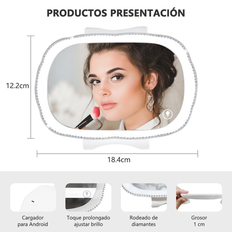 - 【SMART TOUCH DESIGN】 Cuenta con un sensor táctil para cambiar los dos brillos de la luz blanca fría. Pulsación larga para ajustar el brillo de la luz. Función de memoria permite que el espejo retrovisor con luz vuelva al brillo y color de la última vez que se utilizó.