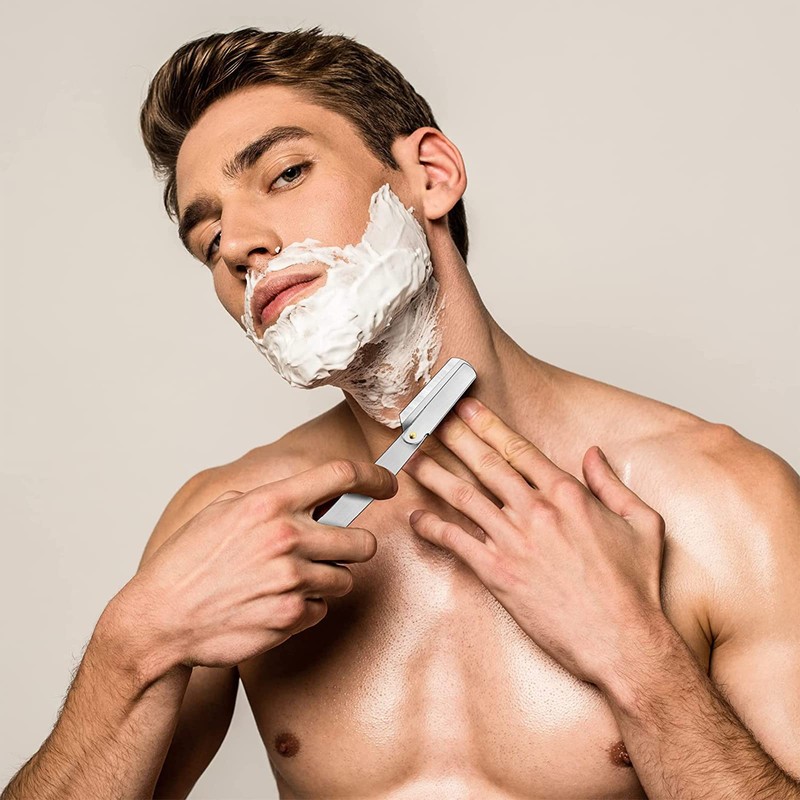 - 【Diseño plegable de seguridad】Barber straight edge razor tiene una apertura de mariposa, que hace que la hoja se sienta más cómoda y ligera que las maquinillas de afeitar ordinarias, lo que permite un mejor agarre de la hoja y un agarre más largo sin cansarse, lo que puede hacer que la maquinilla de afeitar sea más eficiente energéticamente durante su uso.
