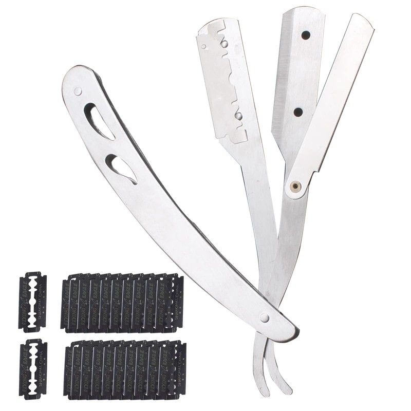 KIWOP Navaja para Afeitar, Maquinilla de Afeitar de Borde Recto con 30 Cuchillas en Total, Cuchillas Afiladas, Ángulo de Apertura de 270 °para Haz Que Tu Afeitado Sea más Limpio, Cómodo Agarre.