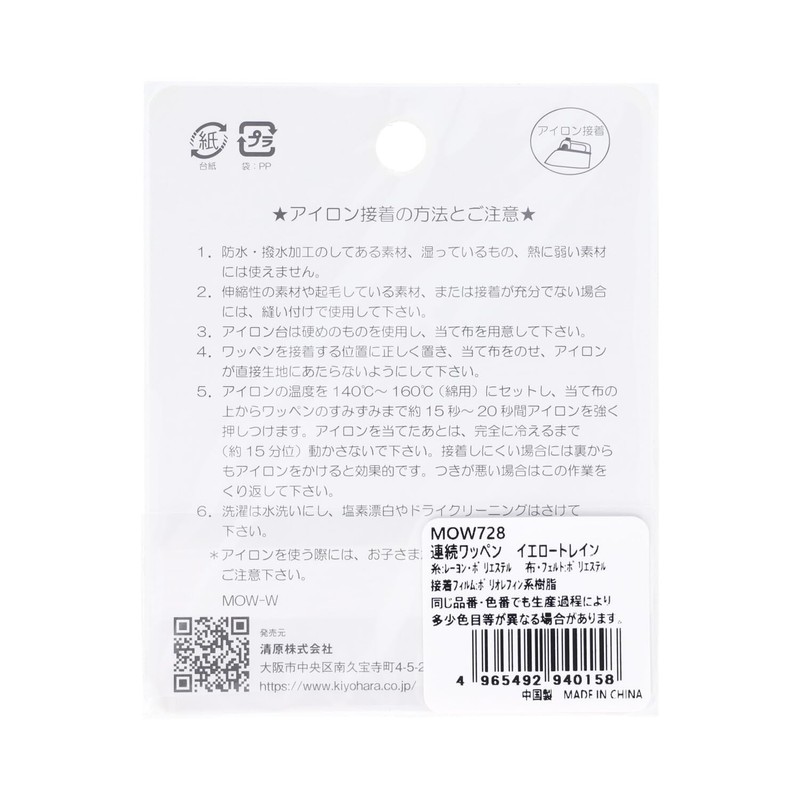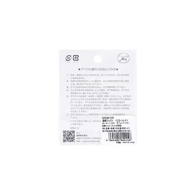 Kiyohara Favorite Series MOW728 Continuous Patch, Yellow Train, Width 2.8 inches (70 mm), Rayon, Polyester, Polyolefin Resin