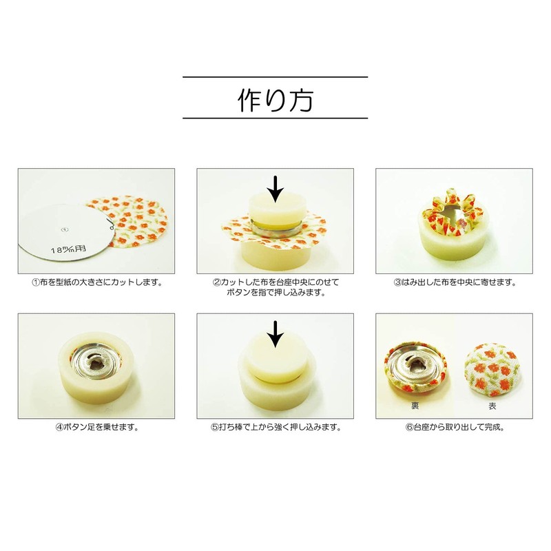- Covered buttons with knurling buttons can be easily made with your favorite fabric