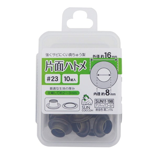 KIYOHARA SUN11-198 Single Sided Grommets, Set of 10, #23, Inner Diameter 0.3 inches (8 mm), Antique Gold