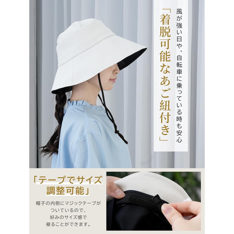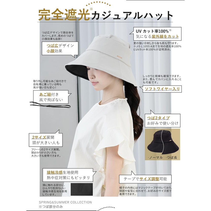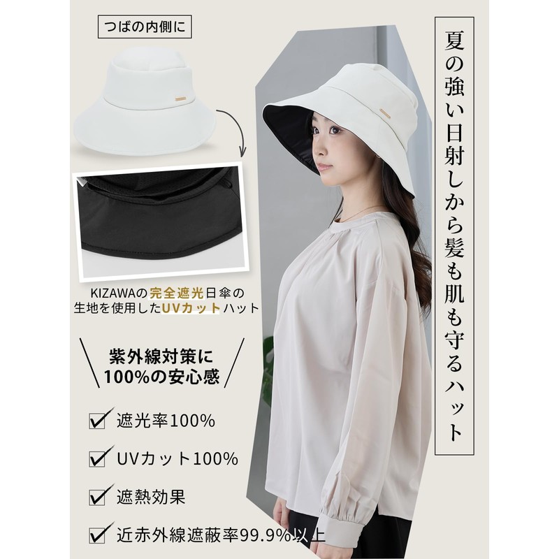 Kizawa Women's Hat, Large Size, Full Light Blocking, UV Protection, 100% Light Blocking, UV Protection, Cold Feeling, Wide Brim, 2 Sizes to Choose from, Brim Length: Off white