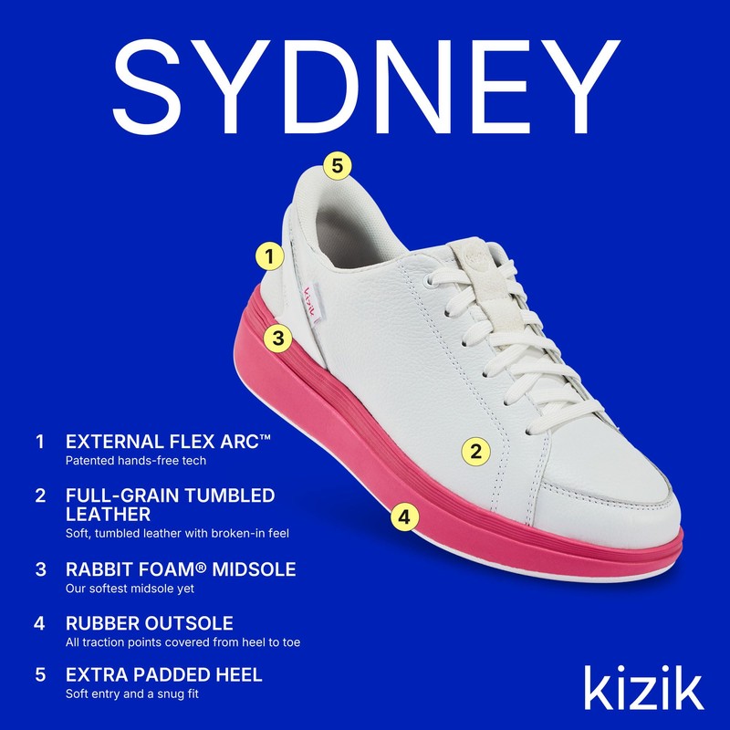 - Hands Free Slip On Sneakers: Kizik womens shoes slip on hands free have External Flex Arc tech letting you step in and go with ease. No bending, no hassle—just the perfect fit every time.