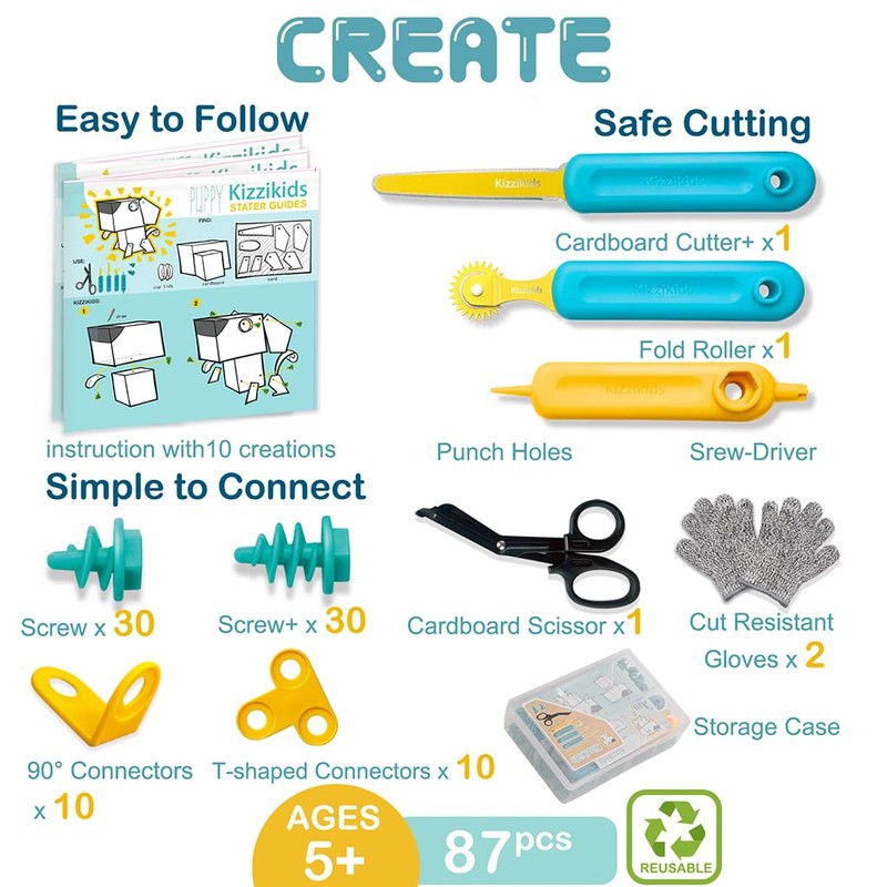 - Easy to Use: Our all-in-one tool box has everything kids need for cardboard crafting. They can easily cut, punch, fold, and connect to bring their ideas to life