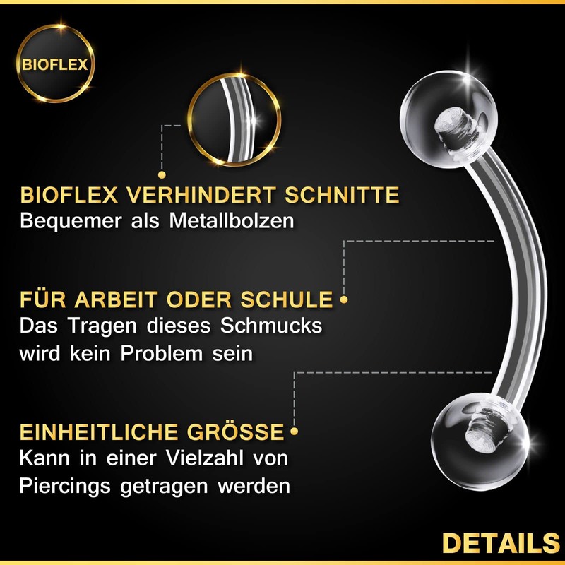 - Bioflex prevents cuts and offers more comfort than metal, making it the perfect material for banana piercing. Product features: banana piercing jewellery, tragus piercing plug, curved barbell 1 2, piercing banana 10 mm.