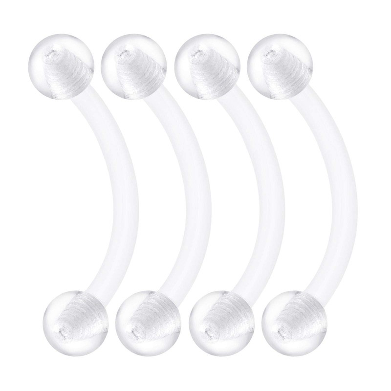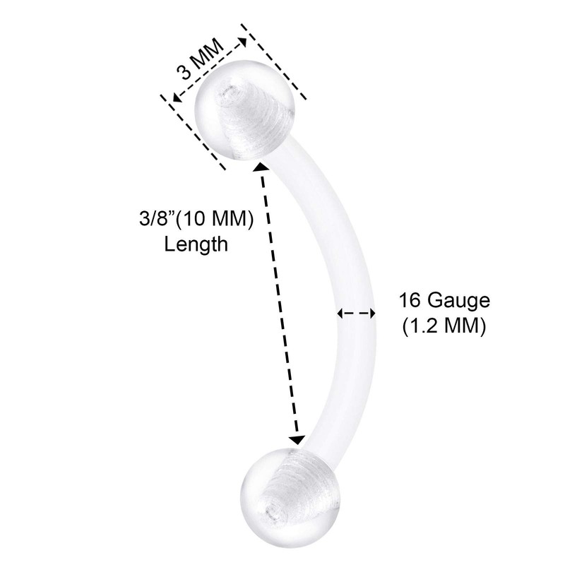 - Package includes 4 pieces. 1.2 mm (16 g) 10 mm (3/8 inch) clear, flexible acrylic piercings banana retainer, 3 mm clear acrylic ball.