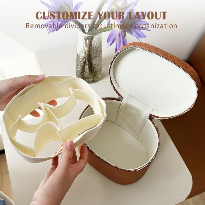 - Storage Dividers: Featuring versatile, removable dividers, this makeup organizer bag allows you to tailor interior space. Accommodate larger items like palettes and bottles, alongside brushes and small accessories. This makeup bag with dividers ensures everything stays neat and secure, preventing damage or clutter during transit