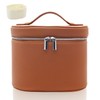 KJMYYXGS Leather Makeup Bag with Dividers Make Up Organizers with Compartments and Handle for Vanity Travel Makeup Countertop Case (brown)