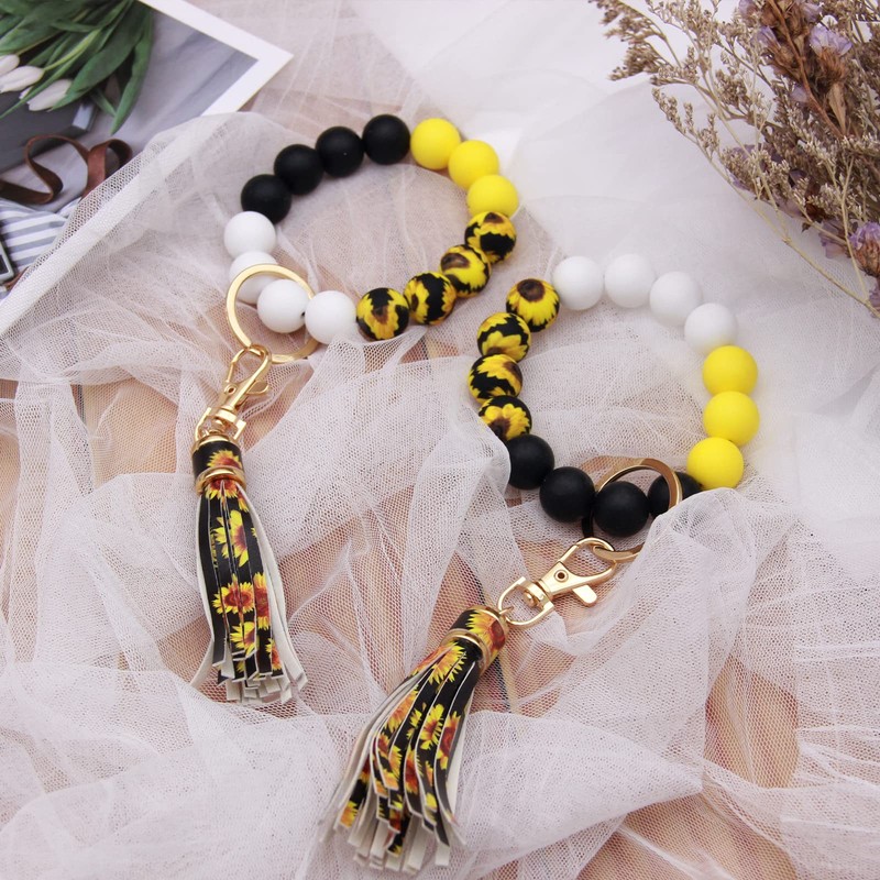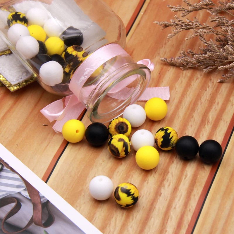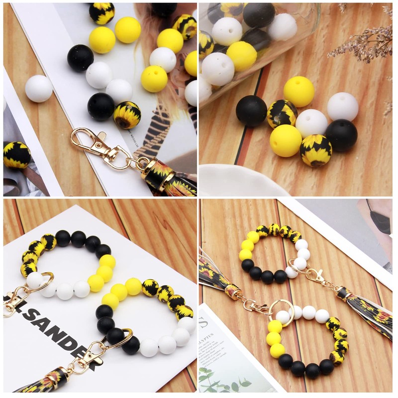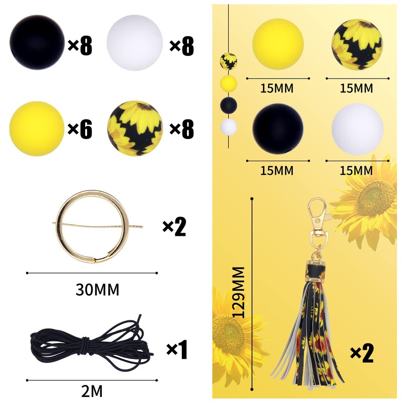 KJMYYXGS Silicone Beads for Keychain Making, 15mm Silicone Beads Bulk Sunflower Silicone Beads with Tassel for Keychain Making