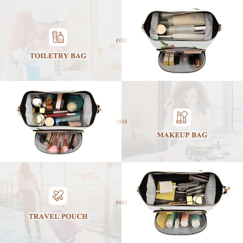 - Size: 10.2x5.9x6.7 in Spacious Capacity: Large zippered side pocket and two inner slip pockets for organizing cosmetics, ideal for travel and toiletries.