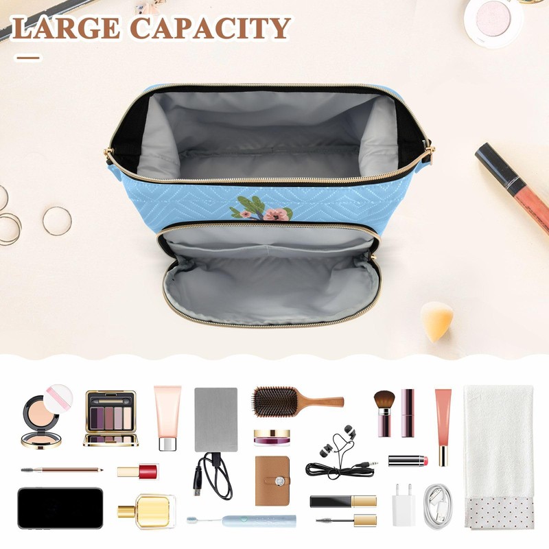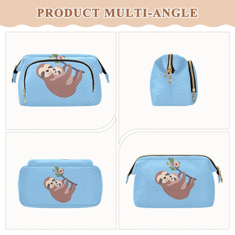 Kjovgcb Women Wave Quilt Cosmetic Bag, Zipper Toiletry Storage 10.2x5.9x6.7 in, Pouch Handbag Makeup Case Purse Holder Organizer Print Sloth With On Tree Trunk With Flowers