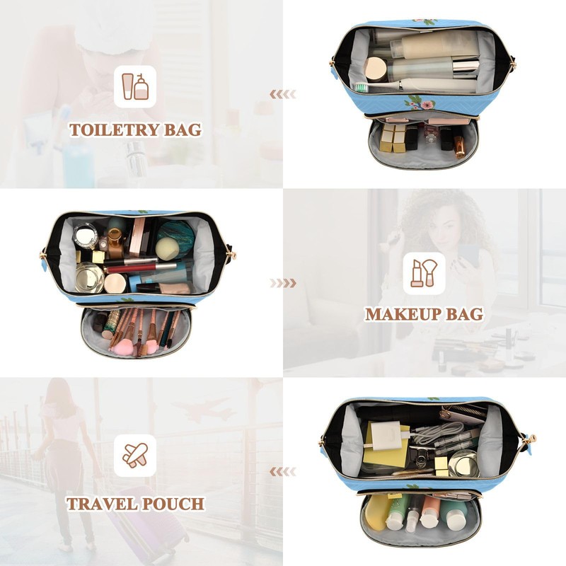 • Size: 10.2x5.9x6.7 in Spacious Capacity: Large zippered side pocket and two inner slip pockets for organizing cosmetics, ideal for travel and toiletries.