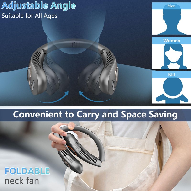 - 🛠️【Adjustable Angle &Folding Neck Fan】Support the folding storage, compact and lightweight, which improving the convenience of going out. Traveling, outdoor activities or daily carrying are extremely convenient.Bring you coolness whenever and wherever you are. The Headphone neck cooler also supports the angle adjustment,allowing the wind direction to be as desired. You can easily adjust to the most comfortable angle and enjoy coolness. So suitable for all ages