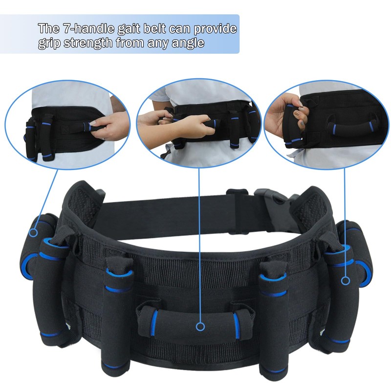 KKAFFE Gait Belts for Seniors with 7 Handles,Back with Anti-Slip Material- Safety Belt for Elderly,Medical Transfer Belt for Lifting/Walking Patients,Over Duty Heavy 250lb Capacity (Blue)