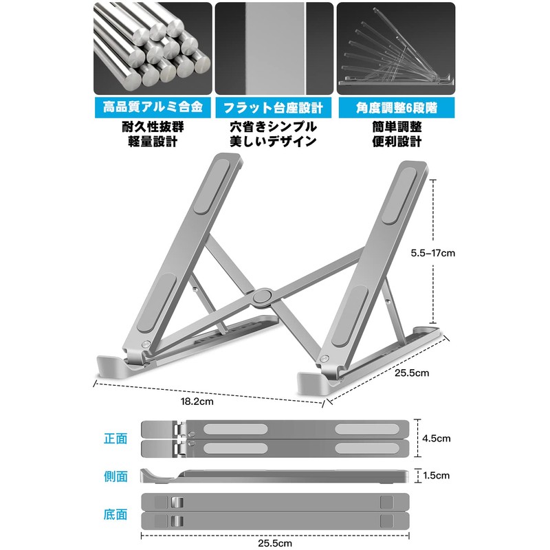 • Selected Materials & Reliable 3 Year Warranty: KKaMM Laptop Stand Folding is manufactured with ADC12 aluminum die-cast process. Very durable and stable. Silicone rubber is larger than conventional laptop stands, anti-scratch effect and improved stability when you put your device on the PC. It is also effective in preventing scratches on your device. This computer stand has less surface contact with the PC, and has a high heat dissipation effect, which can protect your device from freezing. This stand comes with a up to 3 year warranty to ensure that you can rest assured even after purchase. Please check the product included guide for details