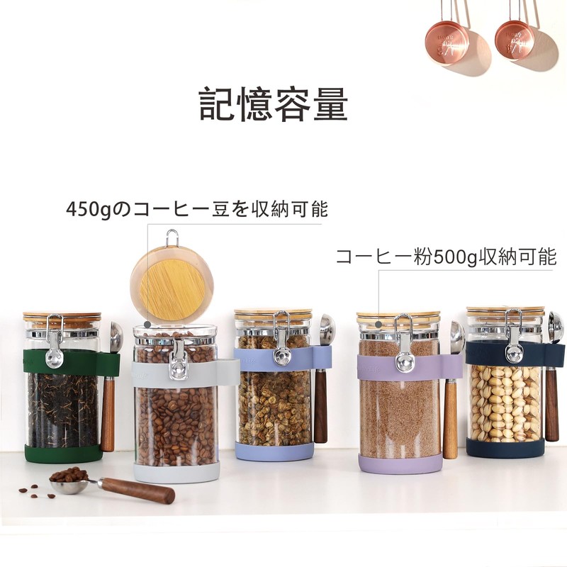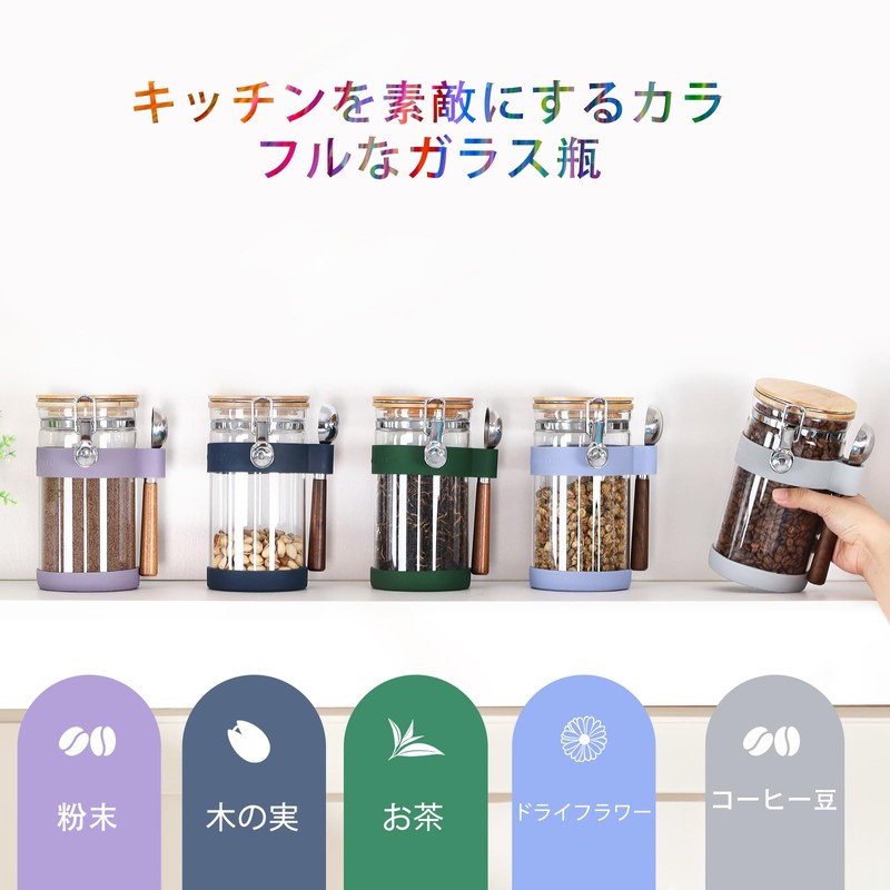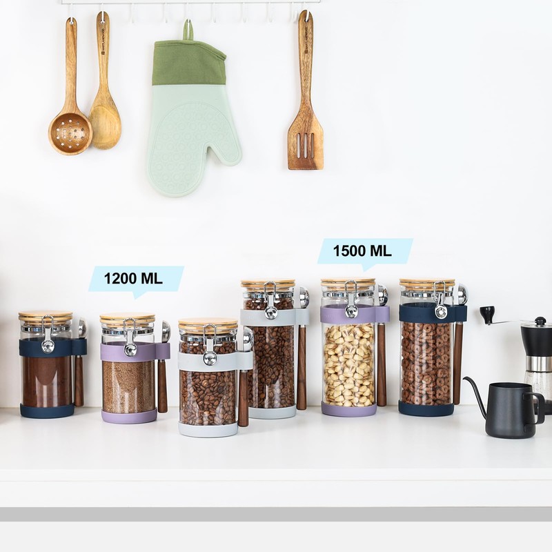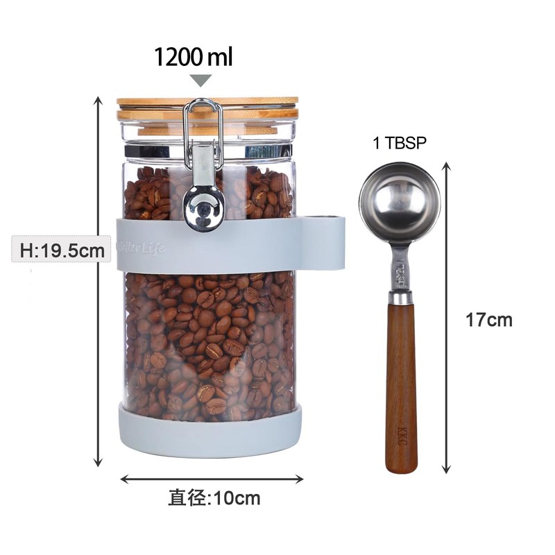 - Set includes: 1 x 1200ml round glass jar, 1 x wooden handle coffee measuring spoon (1 tbsp) silicone cover (spoon holder and bottle bottom non-slip cover)
