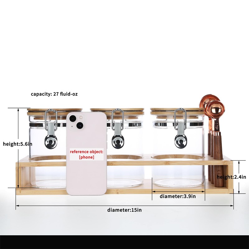 - 【Package Quantity】 : glass jar x 3pcs,bamboo rack x 1 pcs, spoon x 3pcs