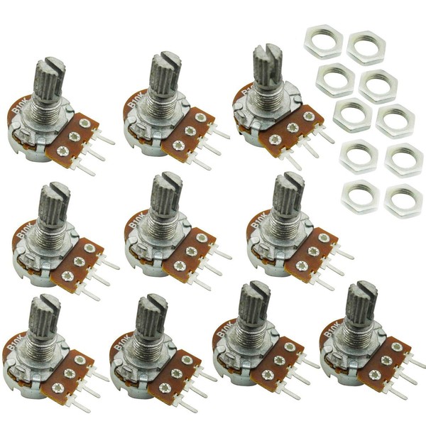 KKHMF 10pcs B10K Top Adjustable Single Turn Knurling Axis Volume Potentiomete...