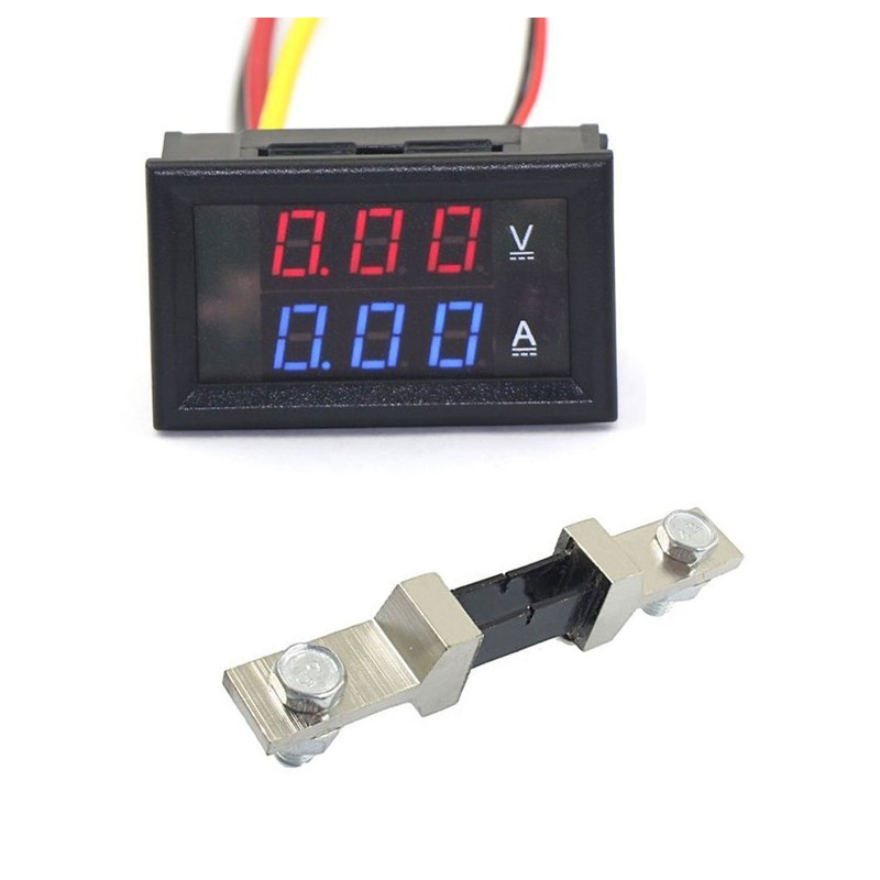 KKHMF 2-in-1 Voltmeter Ammeter DC 0-300V/200A 2-Color Red/Blue LED Display Volt Ampereter Ammeter and Shunt