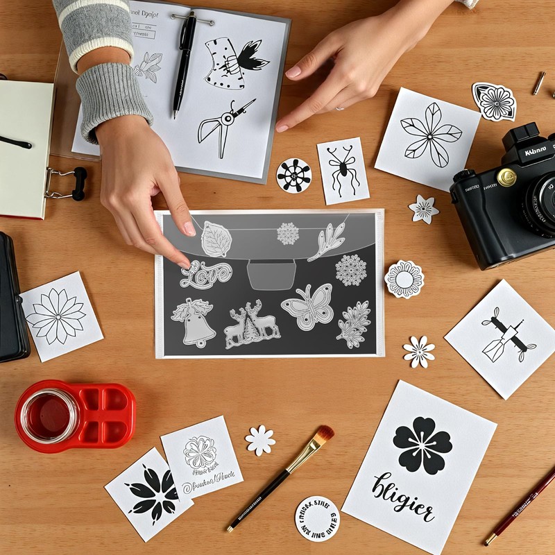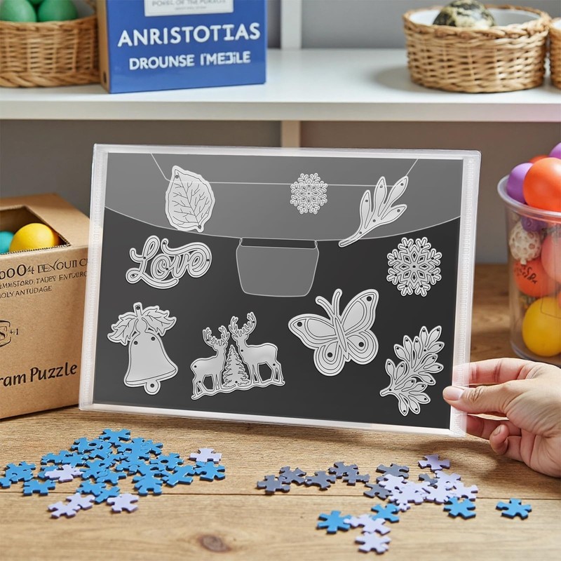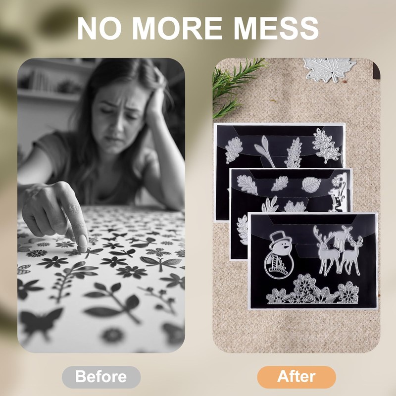- Premium Material Die Cut Storage: Our 5x7 magnetic sheets, designed for stamp and die storage, these magnetic die storage are crafted from top-grade rubber magnets and thickened cardboard, ensuring resistance to deformation. The stamp and die storage pockets are constructed from durable PVC material, featuring a sealed, transparent cover that prevents tearing and enhances longevity.