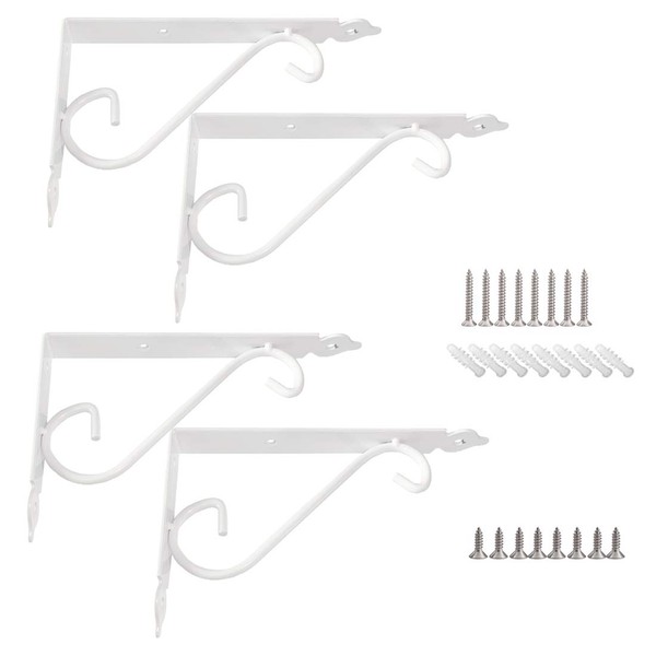 KKlewu Antique Iron Bracket L Shape Shelf Hardware Shelf Set of 4 with Screws 150mm White