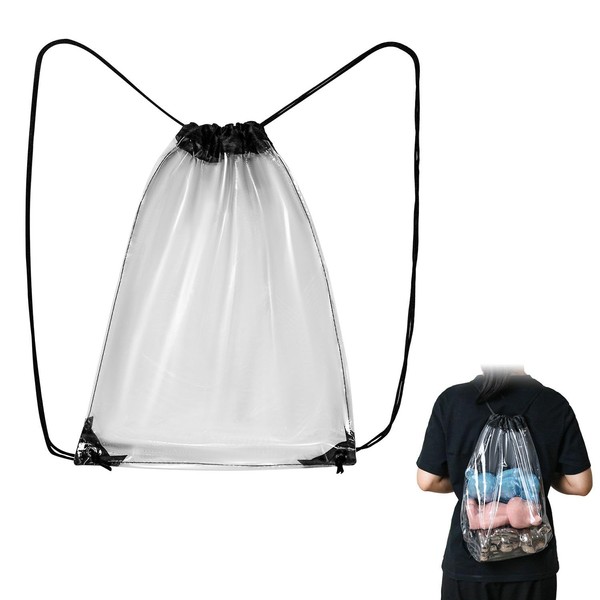 Transparent Drawstring Backpack: Perfect for swimming, sports, and beach! Large capacity, lightweight waterproof backpack is a must have for the pool, gym or beach! This clear drawstring backpack has plenty of room for your swimsuits, wet towel, sportswear, sandals, etc. Lightweight and easy to carry. The biggest feature is completely waterproof! The high quality vinyl material ensures that you never have to worry about it getting wet, making it safe to use by the pool, at the beach or in the shower. The transparent material allows you to see the contents at a glance. It is convenient for you to quickly take out what you need. Recommended for carrying fruits and snacks cleanly. The drawstring type opening opens wide, making it easy to remove and remove items. Also great as a "dirty bag" to separate dirty clothes and wet items. After storage, simply tighten the drawstring cord to make it compact. Breathability is also considered, so moisture is not trapped in. Simple and durable, yet stylish design with a sense of transparency. Add colorful swimsuits and beach accessories to create a trendy look on its own. Use it for travel, fitness, or just for everyday outings. A must-have item for a variety of occasions, from swim lessons to post-sports organization and summer leisure activities.