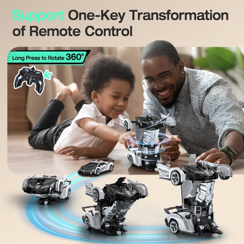 KKM Remote Control Car Toy 2.4GHz Transformer with Flashing Light, 360° Rotating Drifting, 1:18 Scale, Suitable for Ages 5-12 Years:_Black