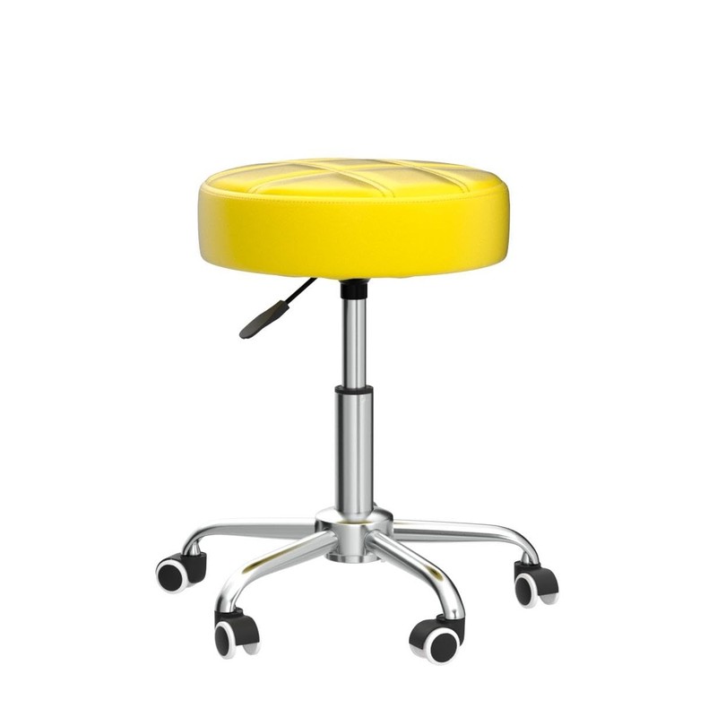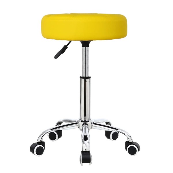 KKTONER Round Rolling Stool with Wheels PU Leather Height Adjustable Swivel Drafting Work SPA Salon Stools Office Chair (Yellow)