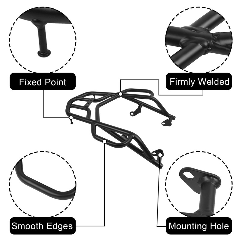 - Easy Installation: The motorcycle luggage rack has mounting holes, no need to drill or modify. Mounts with existing holes, easy installation and removal, practical and can be used for a long time. Comes with installation instructions.
