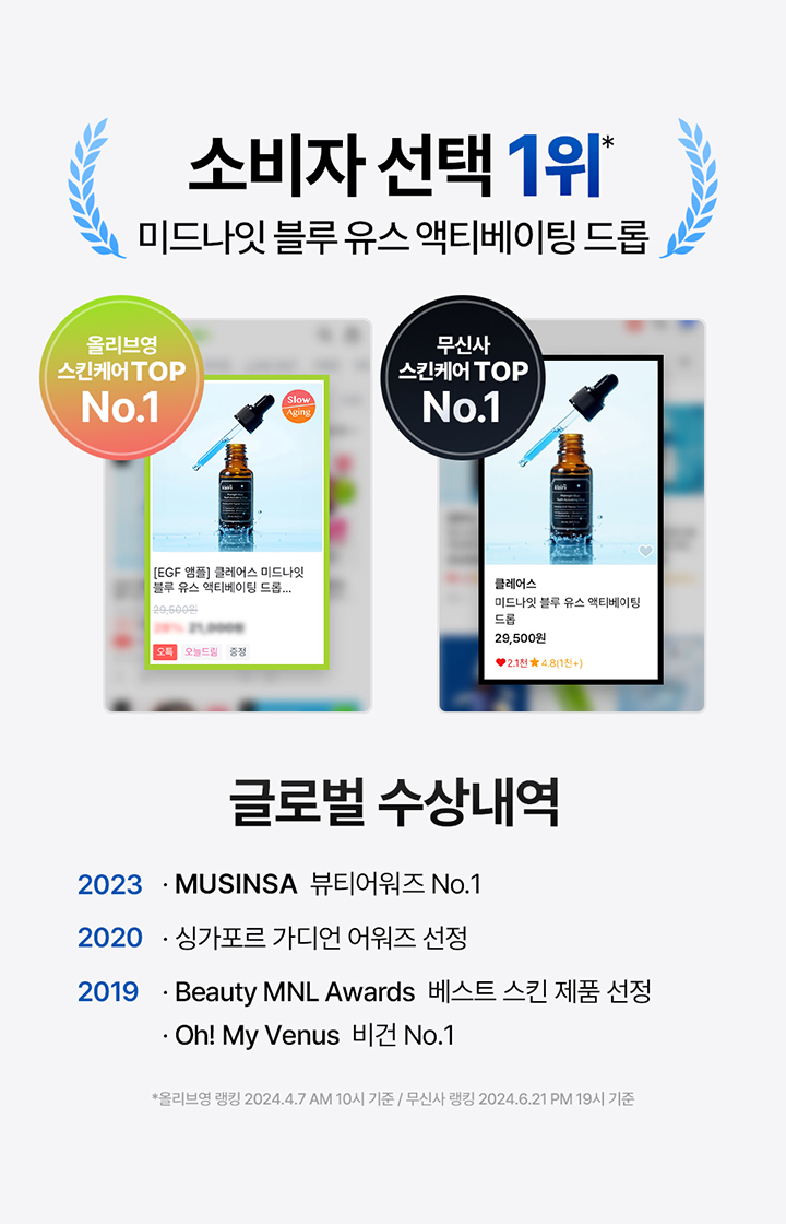 EGF최 대함량 클레어스 EGF 부스팅 앰플 블루드롭 20ml