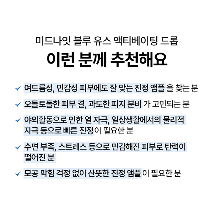 | 화장품법에 따라 기재/ 표시하여야 하는 모든 성분 | 정제수, 부틸렌글라이콜, 에스에이치-올리고펩타이드-1, 에스에이치-폴리펩타이드-1, 로우스위트블루베리추출물, 레시틴, 솔비탄세스퀴올리에이트 , 1,2-헥산다이올, 카프릴릴글라이콜, 피이지-60하이드로제네이티드캐스터오일, 글리세린, 클로페네신, 구아이아줄렌, 에틸헥실글리세린, 아데노신 |