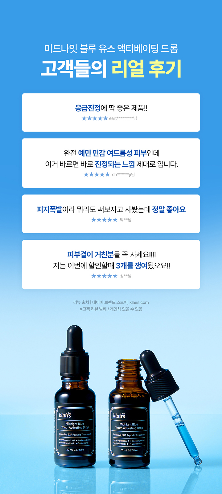 Klairs EGF Boosting Ampoule Blue Drop 20ml, the highest content of EGF / EGF최 대함량 클레어스 EGF 부스팅 앰플 블루드롭 20ml