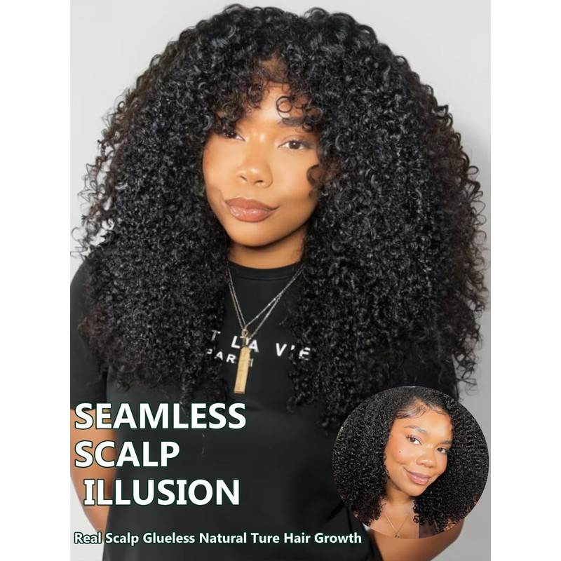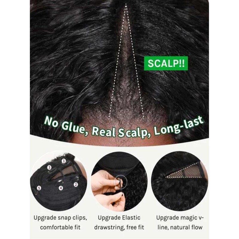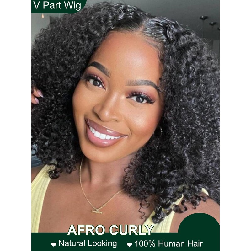 - NEW 4C Kinky Curly V Part Wig Feature: Curly V Part Wig Can Blend Your Natural Hair Well. No Lace No Glue & No Sew In. No Stocking Cap Needed. Wear & Go. Beginner Friendly. Super Secure