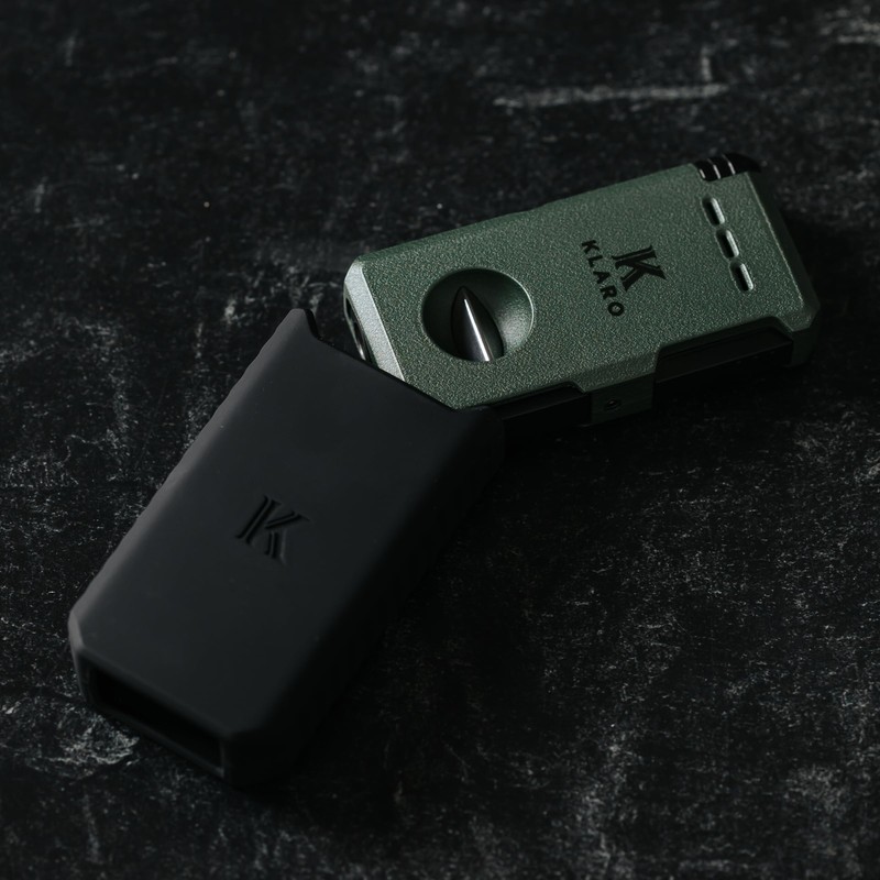 KLARO Double Torch Lighter and V-Cut Cutter, Spring-Loaded V-Cut, Swivel Protective Flame Cover, Hidden Poker, Gift-Ready with Silicone Sleeve, Ranger Green Powder-Coated Finish, Lighter for Men