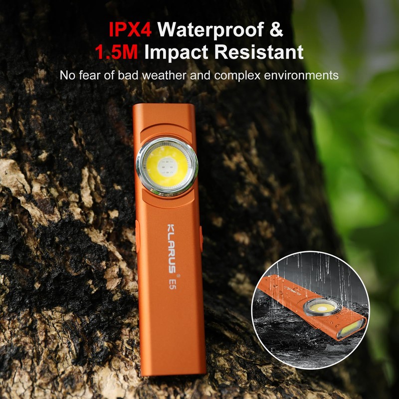 klarus klarus E5 USB C Wiederaufladbare Klein Taschenlampe,COB-Arbeitsleuchte, 600 Lumen, flache Mini Taschenlampe mit Magnetfu? und Schnallenclip. Geeignet fr Wartung, Camping, Wandern, Notfall usw
