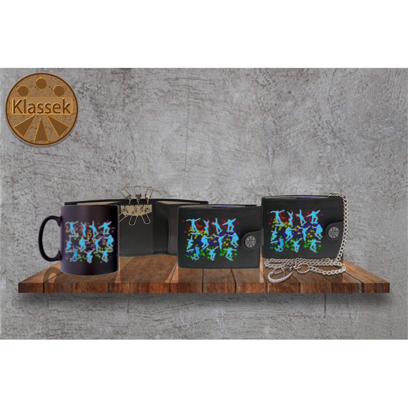 Klassek Skateboard Set of Skateboarding Tricks Skate Board Moves on Brand Men Leather Wallet Keyring Key Rack with Zip Pocket and Metal Gift Box