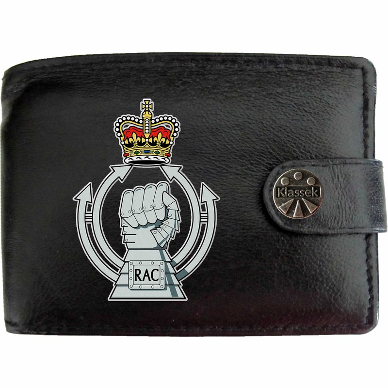 Klassek The Royal Armoured Corps Image Men Wallet Real Leather Cap Badge Emblem Military Crest Insignia RFID Blocking with Coin Pocket and Metal Gift Box