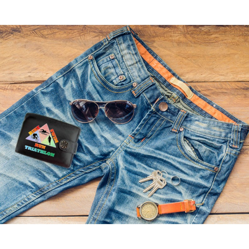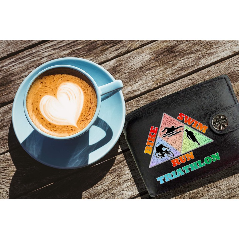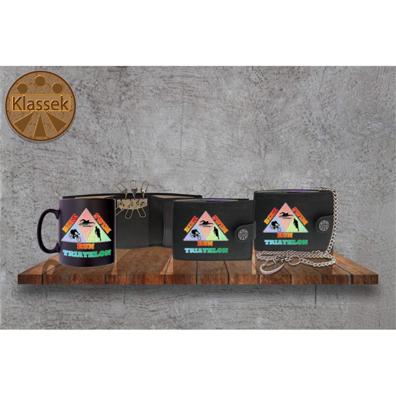 Klassek Triathlon Set Running Swimming Cycling Mens Wallet Real Black Leather RFID Blocking with Coin Pocket and Metal Gift Box
