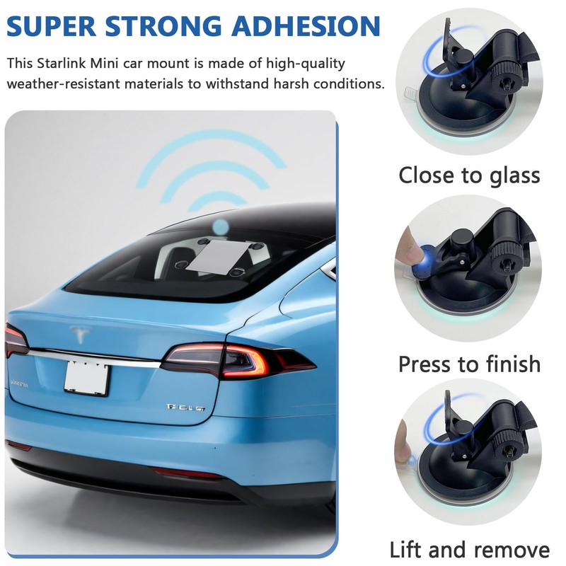 - Powerful Suction for Maximum Stability – With four high-strength suction cups, this mount firmly adheres to car sunroofs, windows, and roofs, providing a secure hold for your Starlink Mini, even during high-speed travel.