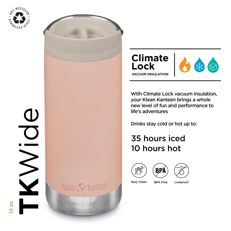 Klean Kanteen 12oz TKWide Insulated Coffee Tumbler with Café Cap - Peach Parfait