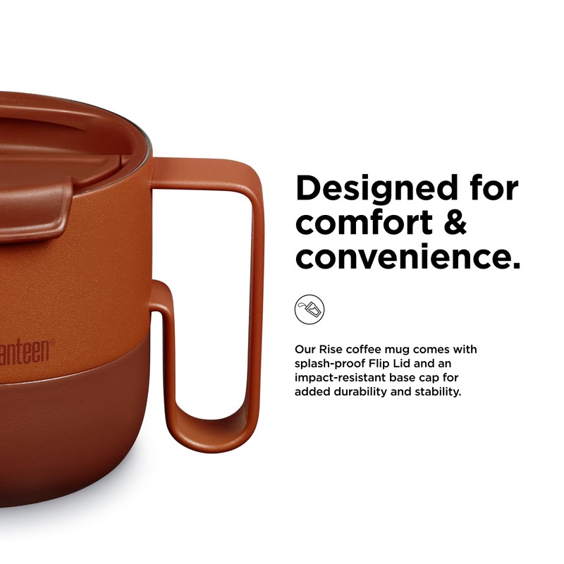 Featuring an easy grip handle, chip-resistant Klean Coat finish, and a new impact-resistant base cap that also provides increased stability. This vessel comes with our new splash- and spill-proof Flip Lid. The Flip Lid’s large opening helps quickly cool hot beverages and is great for straws. Like all of our products, the entire Rise collection is BPA free and made to last a lifetime.