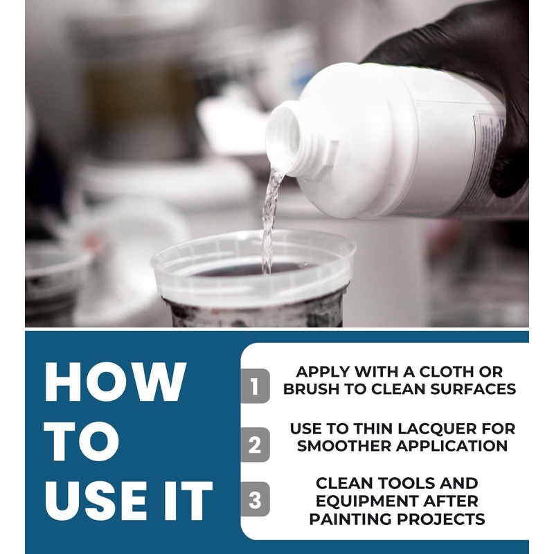 - EFFECTIVE CLEANING - This lacquer thinner 1qt cleans tools and equipment efficiently, making it an essential part of your workshop or garage. Keep your tools in top shape with ease.