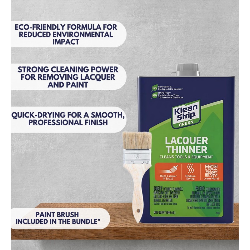 - PERFECT MAINTENANCE COMBO - Pair Klean Strip Green Lacquer Thinner with Klean Strip Paint Remover for a complete maintenance solution. This set includes a flat chip brush, providing everything you need for top-notch results.