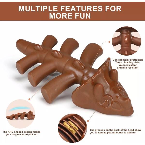 🦴Unique Dinosaur Shape Design: These dog chew toys are designed in the shape of a dinosaur with a frosted texture that won't wear out the mouth and is more suitable for medium and large dogs to chew on, which not only enhances the dog's ability to chew, but also cleans their teeth.