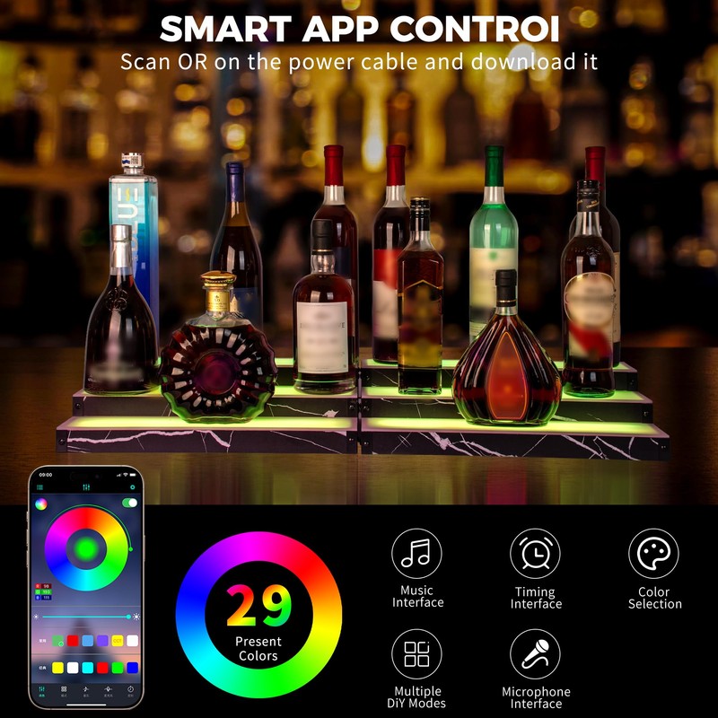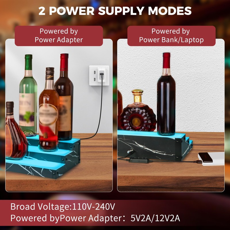 • Versatile Display ShelfMore than a liquor rack, this lighted bar shelf also highlights collectibles, figurines, or action figures. Perfect for home bars, restaurants, man caves, or personal collections, adding a vibrant glow to any space.