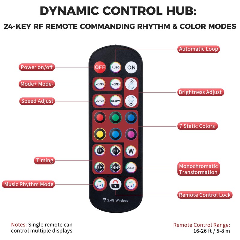 • Easy Setup, USB PoweredNo assembly requiredjust plug into a power adapter, laptop, or power bank. Adjust brightness, colors, and modes (steady, fade, flash) with the RF remote or mobile app.