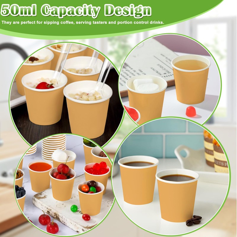 - 1. Set of 200 50ml cups: professional barista capacity. Each 50ml cup (equivalent to a double espresso) is calibrated to output coffee standards. The 200-piece set covers a two-hour flow in medium sized cafes or gourmet events, allowing for continuous, uninterrupted service. Ideal for preserving the freshness of micro batches and specialty coffees.