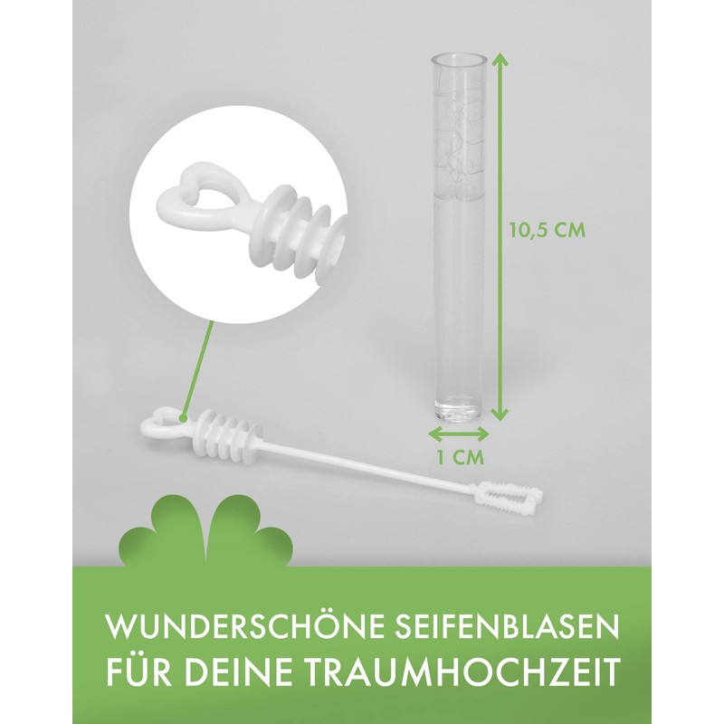• Everything ready for perfect soap bubbles. Whether for wedding photos, table decoration or as an alternative to rice and rose petals, the wedding bubbles are ideal for weddings. Height: approx. 10.5 cm. Diameter: approx. 1 cm, with heart as handle, quantity: 48 (2x24) pieces