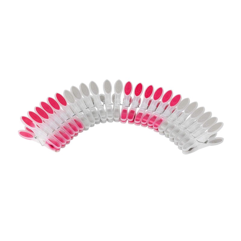 Kleeneze KL066718 Ultra Soft Grip Clothes Pegs, Pack Of 24, Use On Indoor/Outdoor Washing Lines, Non-Slip Laundry Pegs, Rust & Moisture Resistant, Strong Durable Plastic, Recycled PP, Grey/Pink